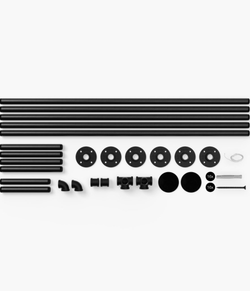 Die Komponenten sind aus massivem Stahl gefertigt und pulverbeschichtet. Es ist resistent gegen Kratzer, Wasser und Reinigungsmittel. Sie können Ihre Produkte auch problemlos im Bad oder in der Küche verwenden. Die Rohre sind außerdem resistent gegen Haustierkrallen und behalten über Jahre hinweg ihr attraktives industrielles Aussehen.