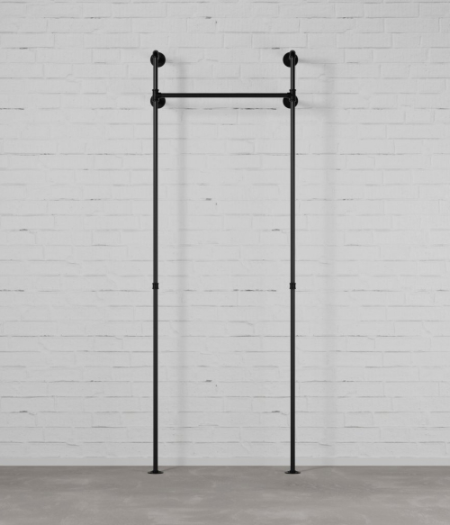 Das Garderobenset DARIO I SINGLE mit einer Höhe von 2300 mm aus dem Rusticline-Rohrsystem macht Ihre Garderoben, Eingangsbereiche, Schlafzimmer oder Bekleidungsgeschäfte zu etwas Besonderem. Dank seiner Variabilität passt es in jeden Raum.