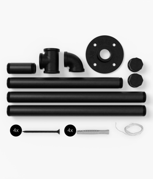 Die Komponenten sind aus massivem Stahl gefertigt und pulverbeschichtet. Es ist resistent gegen Kratzer, Wasser und Reinigungsmittel. Sie können Ihre Produkte auch problemlos im Bad oder in der Küche verwenden. Die Rohre sind außerdem resistent gegen Haustierkrallen und behalten über Jahre hinweg ihr attraktives industrielles Aussehen.