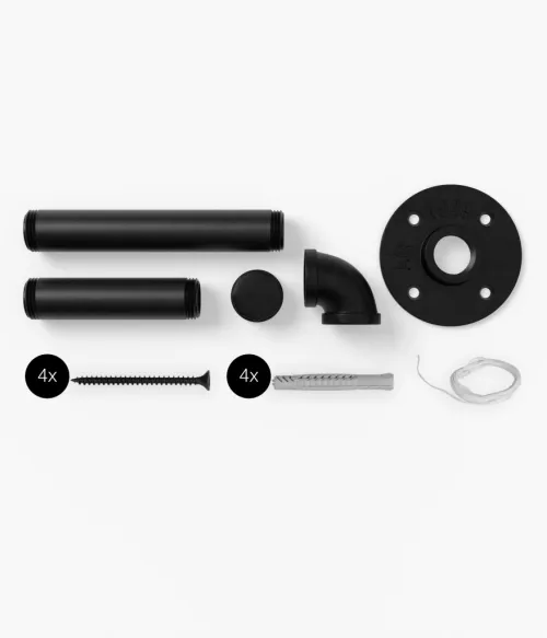 Die Komponenten sind aus massivem Stahl gefertigt und pulverbeschichtet. Es ist resistent gegen Kratzer, Wasser und Reinigungsmittel. Sie können Ihre Produkte auch problemlos im Bad oder in der Küche verwenden. Die Rohre sind außerdem resistent gegen Haustierkrallen und behalten über Jahre hinweg ihr attraktives industrielles Aussehen.