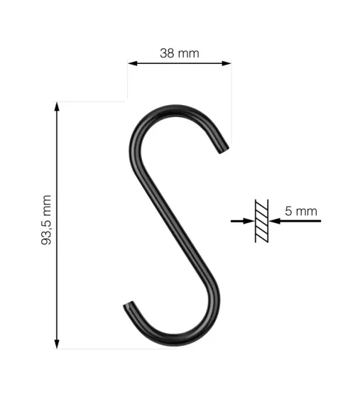 With RT-48 hook intended for hanging on Rusticline pipes 93.5 mm high, 38 mm deep and 5 mm thick. Included in the package are 5 pcs of S hooks.