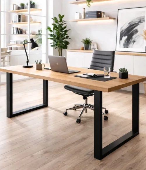 Kovinski okvir v obliki črke U v mat črni barvi je stilsko primeren za izdelavo pohištva v industrijskem in loft slogu. V kombinaciji z lesom je odlična izbira za izdelavo različnih vrst miz, klopi ali delovnih površin, kjer je potrebna stabilnost in nosilnost do 250 kg.