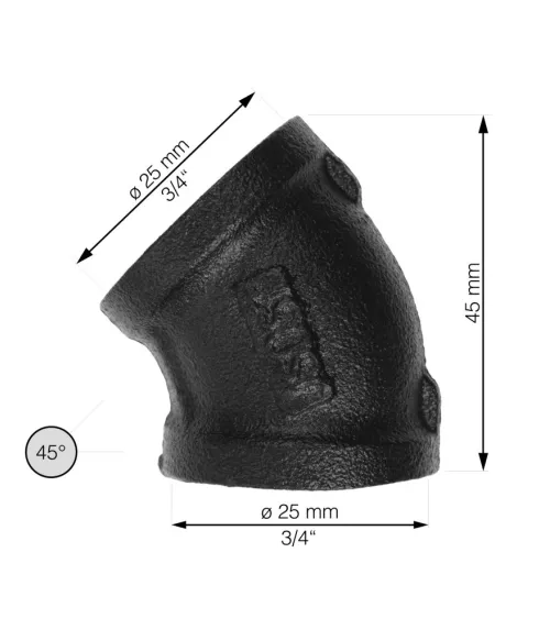 Rusticline koleno 3/4", 45°, RT-4, črno